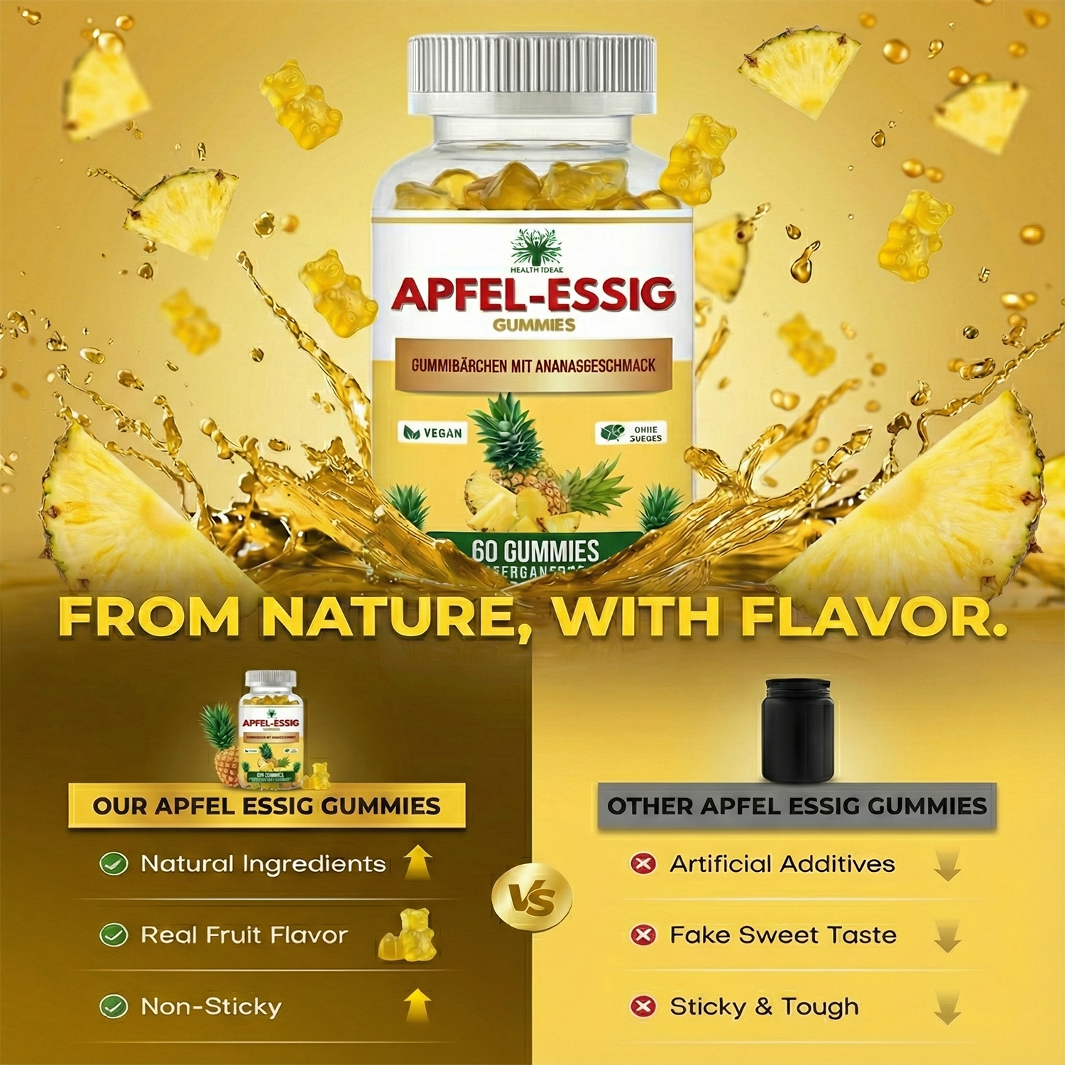 - Fruity apple cider vinegar enjoyment: delicious gummies with natural apple cider vinegar flavour – easy to enjoy and pleasantly sweet.